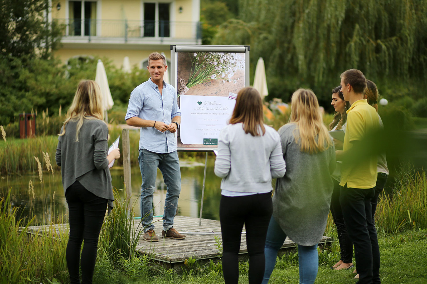 • RelaxGarten mit weitläufigen Freiflächen für Pausen & Gruppenarbeiten